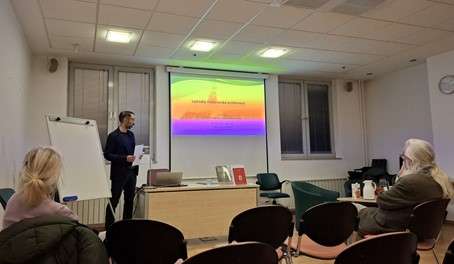 Učenici koji pohađaju fakultativni predmet Antička baština posjetili su 4. ožujka 2025. predavanje o makaronskoj latinskoj književnosti. Taj se oblik jezika razvio krajem 15. stoljeća u sjevernoj Italiji, a obilježava ga dodavanje latinskih nastavaka na osnovu riječi iz narodnog jezika kako bi se postigao humorističan efekt. U stilu nije neobično pronaći reference na poznate antičke autore poput Vergilija. Kratak i sažet uvod u temu te nekoliko primjera predstavio je filolog prof. dr. sc. Šime Demo u knjižnici Augusta Cesarca, a bilo je zanimljivo saznati da makaronska književnost svoje ime dobiva od njoka, a ne makarona koje danas poznajemo.
